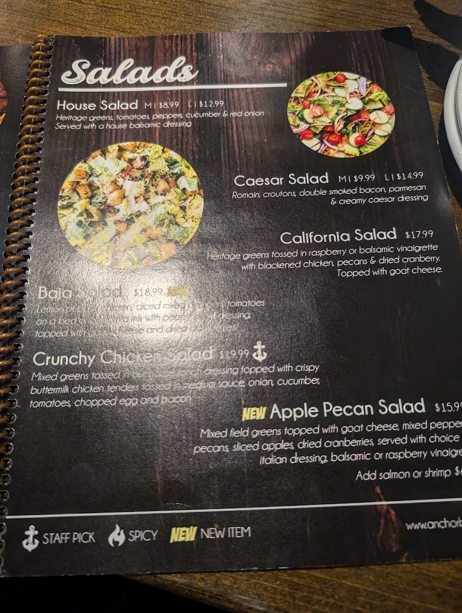 Freshly beer-battered seasonal fish coated with hickory sticks, fried golden brown. Served with Anchor slaw & fries and accompanied with a lemon wedge and tartar sauce.